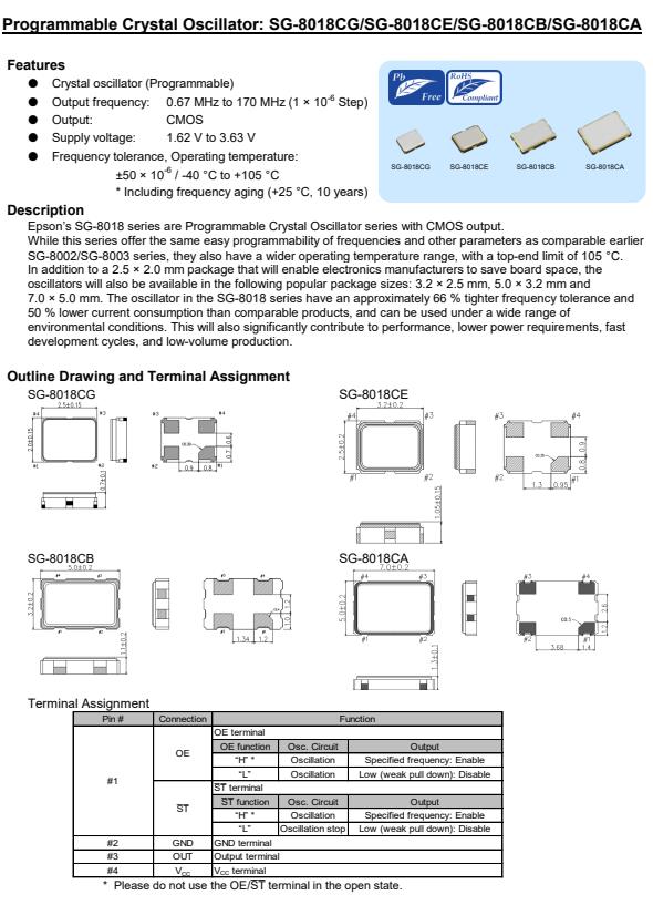 愛普生推出的SG-8018CG晶振,SPXO貼片有源晶振,編碼X1G005601004300,頻率26.000000兆赫,輸出WaveCMOS,供電電壓1.62至3.63 V,尺寸(長×寬×高)2.50 × 2.00 × 0.80毫米,工作溫度-40到+105°C,頻率公差±50ppm,額外的OptionsN /,OSC TypeProgrammable Clock時鐘OSC,這是一款很適合用于航空電子領域的晶振。