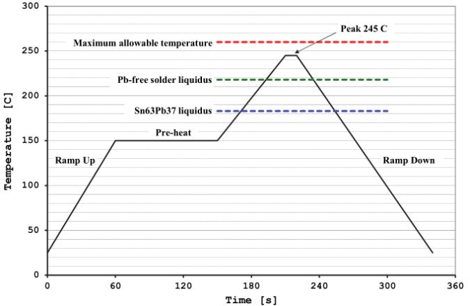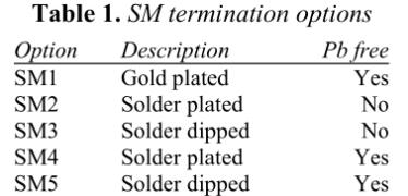 SM2和SM3端接含有Sn63Pb37焊料,而SM4和SM5端接含有無鉛錫基焊料。在這四種情況下,焊料回流曲線必須既熱到足以熔化終端焊料,又不會熱到損壞設備。