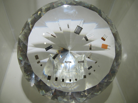 在眾人眼中看起來多么不起眼的晶振,其實它的用處卻大的驚人,它和其它的電子元件不一樣,在電子元器件專區不乏大氣靚麗的展臺,但一家晶振公司的別出心裁之舉卻同樣令人流連,這就是來自深圳的康華爾電子有限公司。該公司的工作人員正在小心翼翼地擺放產品,如此小巧精致的晶振被排列在鉆石形狀的通透的人工水晶上,顯得那么璀璨耀眼,吸引了眾多參觀者的目光。