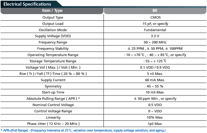 TXC有源晶振,BR,BJ,BK,BM,BN,BP7050mm壓控晶體振蕩器,高精度晶振,超小SMD接縫密封時鐘晶體振蕩器單位,在無線局域網中的應用,藍牙,DSC,DSL和其他IT產品,三態函數,通過無鉛認證/ Pb免費.