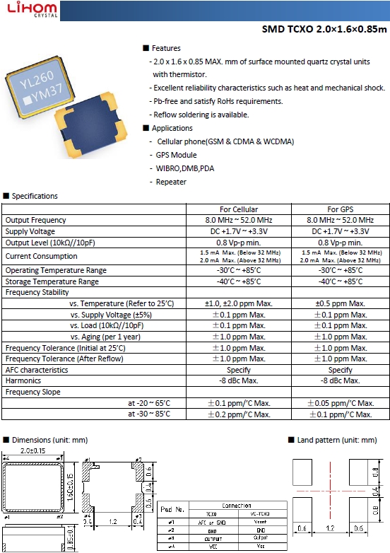 Lihom Crystal,溫補(bǔ)晶振,BXT-201(V)貼片晶振.貼片式石英晶體振蕩器,低電壓?jiǎn)?dòng)功率,并且有多種電壓供選擇,比如有1.8V,2.5V,3.3V,3.8V,5V等,產(chǎn)品被廣泛應(yīng)用于,平板筆記本,衛(wèi)星系統(tǒng),光纖通道,千兆以太網(wǎng),串行ATA,串行連接SCSI,PCI-EXPress的SDH / SONET發(fā)射基站等領(lǐng)域.符合RoHS/無鉛.