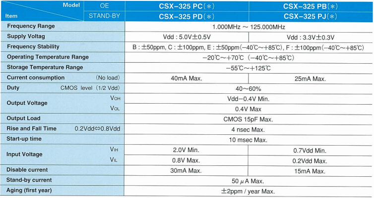 西鐵城有源晶振,CSX-325P晶體振蕩器,3225mm貼片晶振,大范圍的輸出頻率鎖相環(huán)技術(shù),快速樣品交付和短交貨期在大規(guī)模生產(chǎn),自動(dòng)安裝和回流類型、低電流消耗與允許輸出函數(shù)(oe)或站在函數(shù)(備用),適合各種應(yīng)用,如通信設(shè)備、影音設(shè)備、汽車設(shè)備和測量儀器.