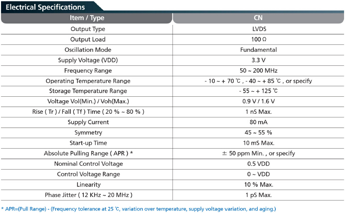 智能空調晶振,CN,CJ,CR,5032mm壓控晶體振蕩器,TXC晶振經銷商,根本的解決方案,LVDS輸出,輸出頻率50兆赫到200兆赫,拉力范圍寬,線性度好,低相位噪聲、低抖動、三態函數,應用程序:SDH / SONET、以太網、基站,通過無鉛認證/ Pb免費.
