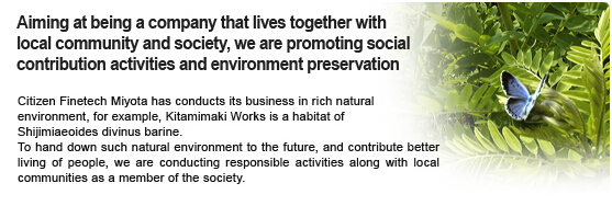 基于我們的哲學“貢獻和努力得到尊重的世界公民,”通過業務活動,考慮到世界各地的人們和全球環境,我們西鐵城為一個可持續的社會中,人們可以享受生活的安全感和成就感.