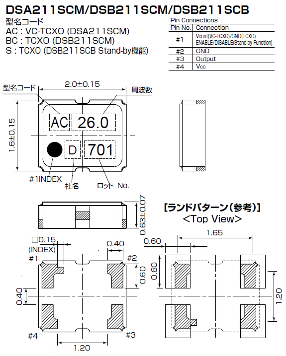 DSA211SCM振蕩器,VC-TCXO晶振,KDS晶振代理商,“1XXC26000HBA”頻率范圍12.288MHz~52.0MHz,小型SMD封裝2.0*1.6*0.63mm,低電壓1.7V~3.5V,頻率溫度穩定值±1.5×10-6,低相位抖動,主要用于攜帶電話,GPS,GMS,其他無線通信設備中.