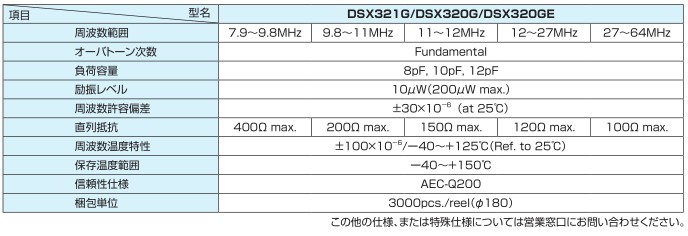 KDS晶振,貼片晶振,DSX320G晶振,超小型表面貼片型SMD晶振,最適合使用在汽車電子領域中,也是特別要求高可靠性的引擎控制用CPU的時鐘部分.低頻晶振可從7.98MHz起對應,小型,超薄型具備強防焊裂性,石英晶體在極端嚴酷的環境條件下也能發揮穩定的起振特性,產品本身具有耐熱,耐振,耐撞擊等優良的耐環境特性,滿足無鉛焊接以及高溫回流溫度曲線要求,符合AEC-Q200標準.