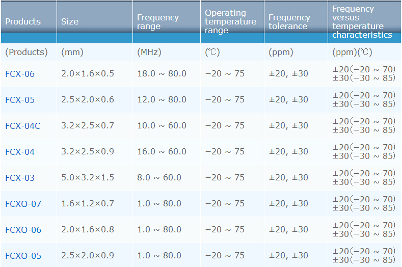 大河株式會社,FCX-04C貼片晶振,車載電子產(chǎn)品晶振,在高度緊湊的設計3.2mm×2.5mm×0.7mm最大,重量:18mg,可容納10至60MHz頻率,VCXO拉寬頻率范圍,適應高精度的頻率和溫度特性,無鉛焊接可用,符合RoHS,隨著AEC-Q200依從性的可能性.無線通信模塊,各種通信,熱像儀,時鐘.