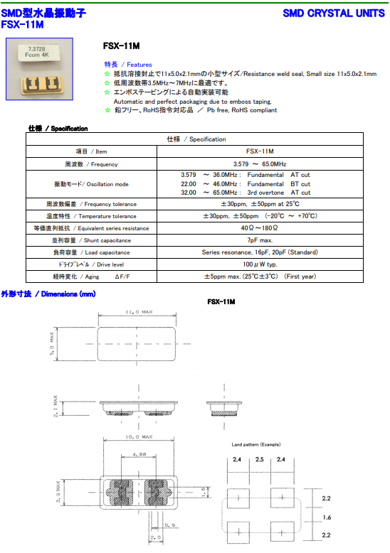 | 富士晶振 | 單位 | FSX-11M晶振 | 石英晶振基本條件 |