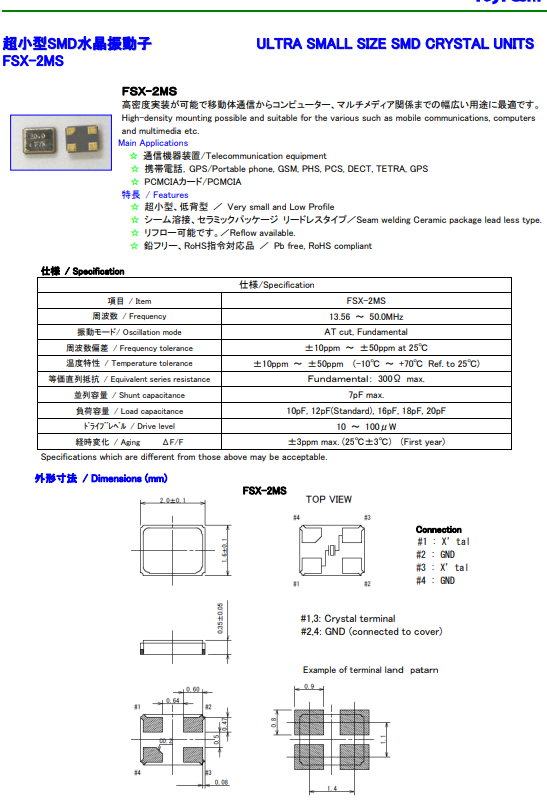 | 富士晶振 | 單位 | FSX-2MS晶振 | 石英晶振基本條件 |