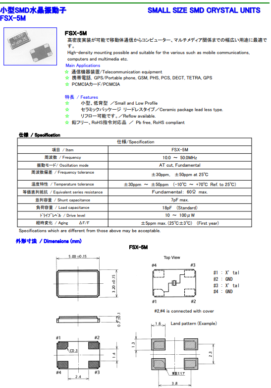 | 富士石英晶體 | 單位 | FSX-5M晶振 | 石英晶振基本條件 |