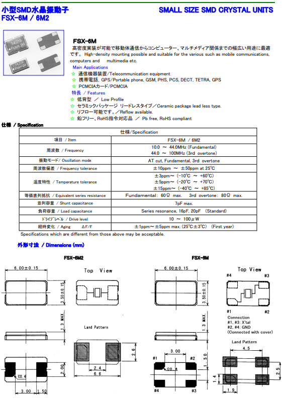 | 富士晶振 | 單位 | FSX-6M晶振 | 石英晶振基本條件 |