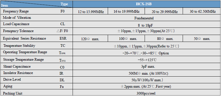 鴻星晶體諧振器HCX-2SB2520,HCX-1AB2016,HCX-TAB1612石英晶振,非常緊湊輕薄(2.5 * 2.0 * 0.65mm MAX)頻率范圍12M至62.5M.應(yīng)用于手機(jī)和藍(lán)牙程序中.良好的耐熱性和耐沖擊性.無鉛的產(chǎn)品.這些能滿足使用無鉛焊料回流分析的要求.