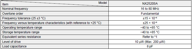 石英晶體諧振器,日本電波株式會社,NX2520SA無源晶振,小型、薄型 (2.5×2.0×0.50mm),具有優良的耐環境特性,如耐熱性、耐振性,滿足無鉛焊接的回流溫度曲線要求,最適用于Bluetooth、Wi-Fi等的短距離無線和智能手機、平板電腦等的基準時鐘源.