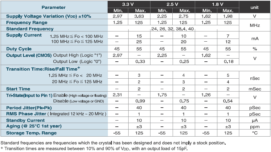 進口臺灣品牌晶振,OX-3225普通有源晶振,TAITIEN貼片晶振,典型的3.2×2.5×0.95mm貼片封裝,tidht對稱性(45至55%)可用,工作電壓1.8V,2.5V,3.3V,實現了三態的待機功能.產品本身具有耐熱,耐振,耐撞擊等優良的耐環境特性,滿足無鉛焊接以及高溫回流溫度曲線要求,符合AEC-Q200標準.