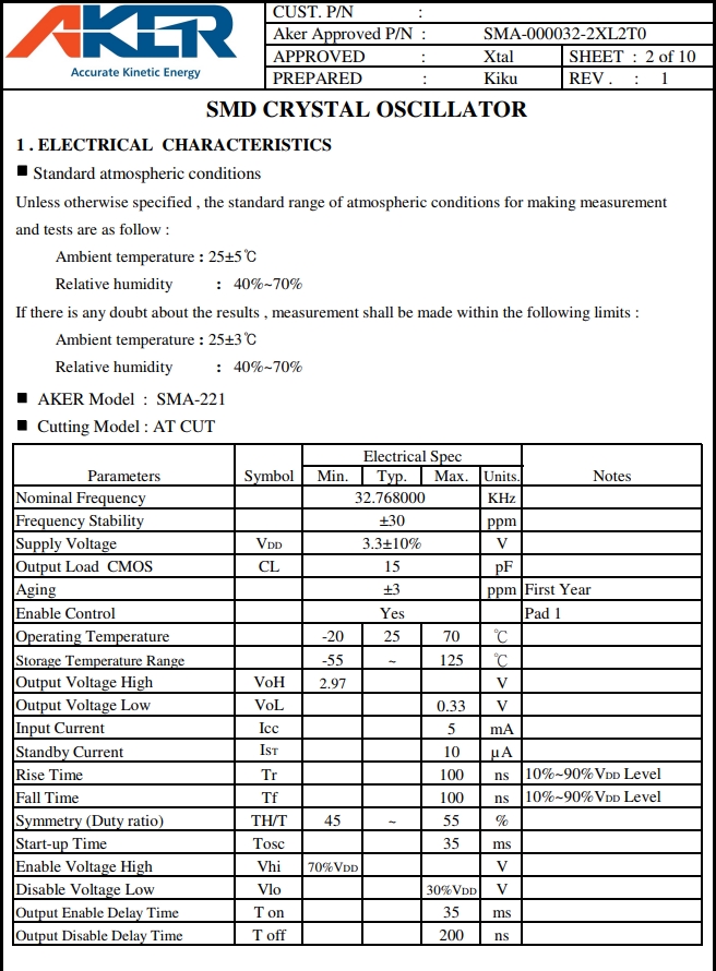 AKER晶振,SMA-000032-2XL2T0晶振,SMA-221晶體振蕩器