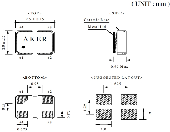 封裝 | 金屬面貼片 | 尺寸 | 2.5*2.0*0.95mm |