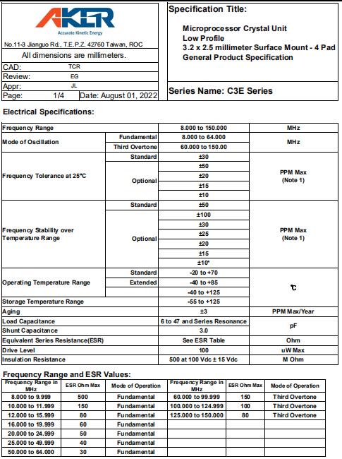 Aker研究發現針對性地改變石英晶體C3E-40.000-10-1530-X-R頻率,作為電路的標準,通常基于大型石英的電氣規格。以至于因為開發人員越來越多地使用較小的變體,但它們完全不同屬性作為其最大的同行。